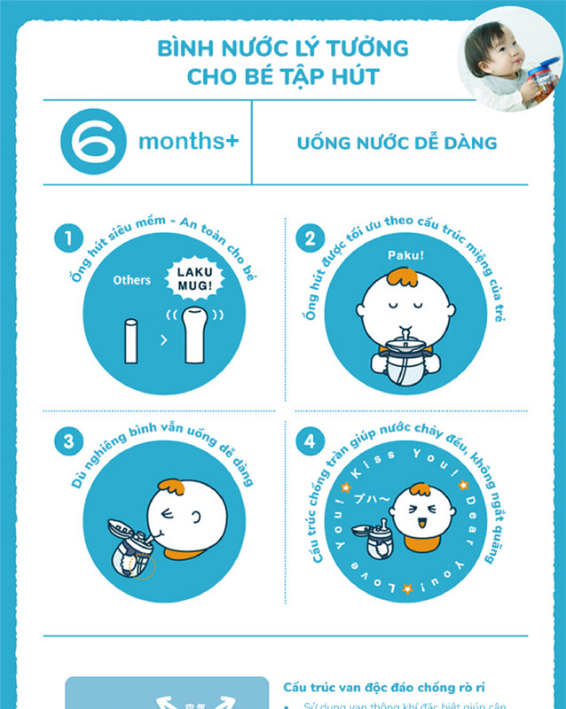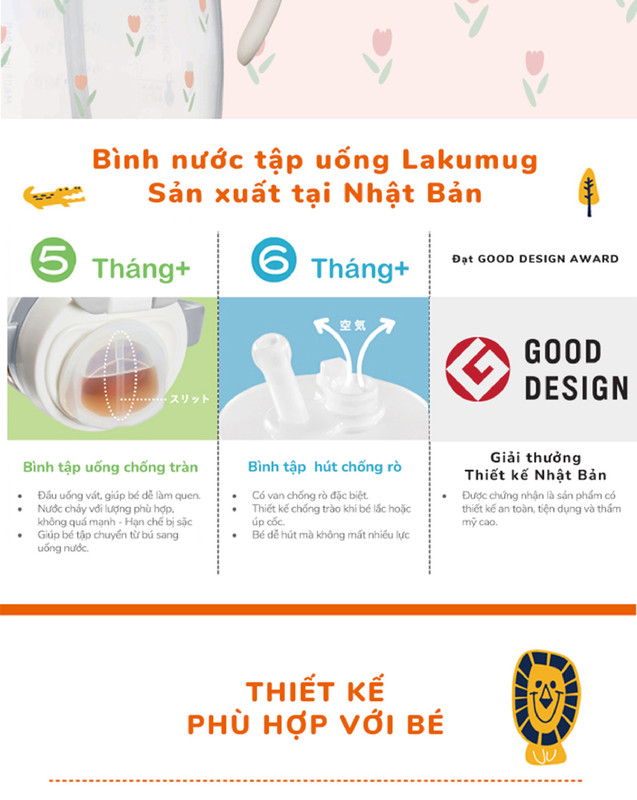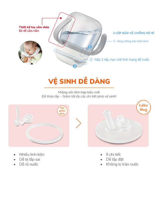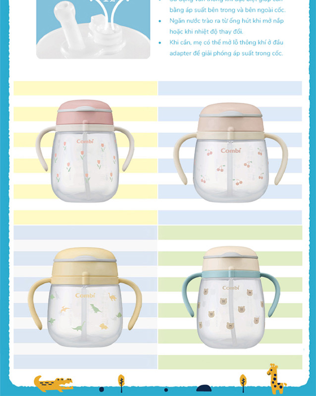 Bình nước Combi LakuMug bước 6 dung tích 240ml Cherry