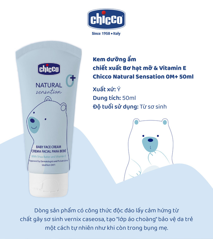 Kem dưỡng ẩm chiết xuất Bơ hạt mỡ & Vitamin E Chicco Natural Sensation 0M+ 50ml
