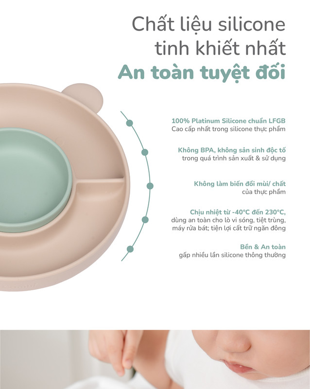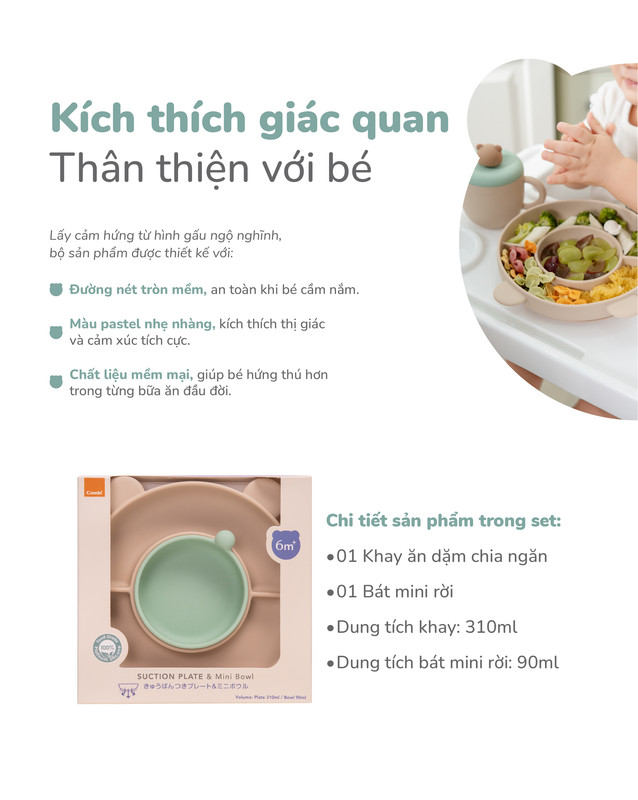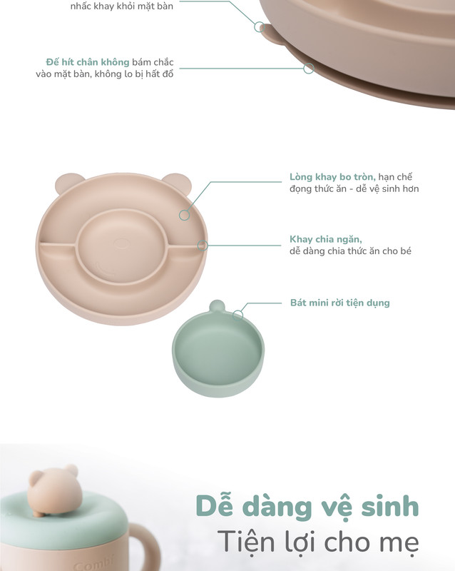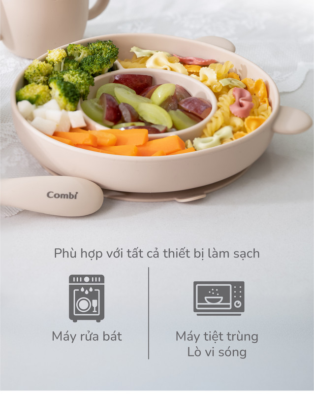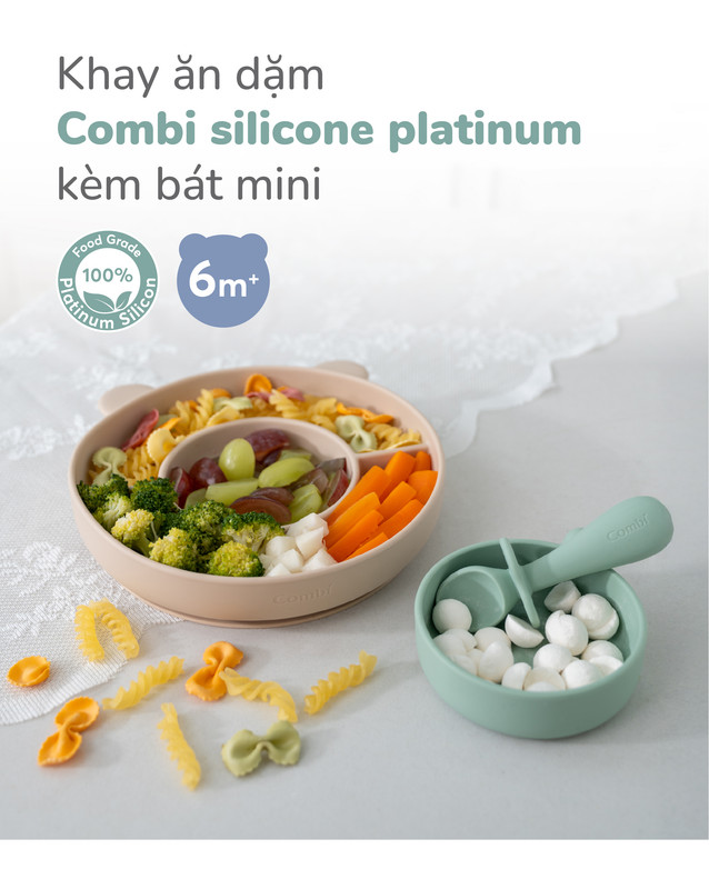 Khay ăn dặm Combi silicone platinum kèm bát mini