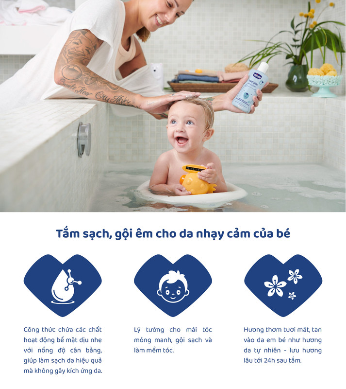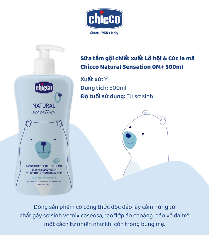 Sữa tắm gội chiết xuất Lô hội & Cúc La Mã Chicco Natural Sensation 0M+ 500ml
