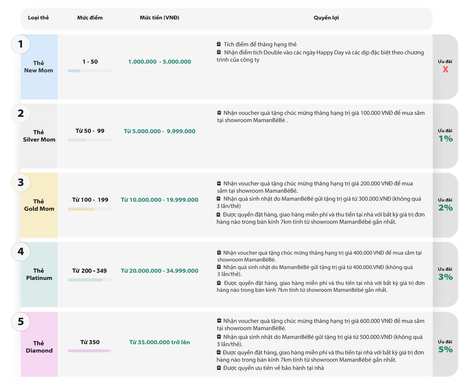 - Quyền lợi của thẻ New Mom được duy trì cho tất cả các hạng thẻ trong chương trình thẻ Elit Mom.